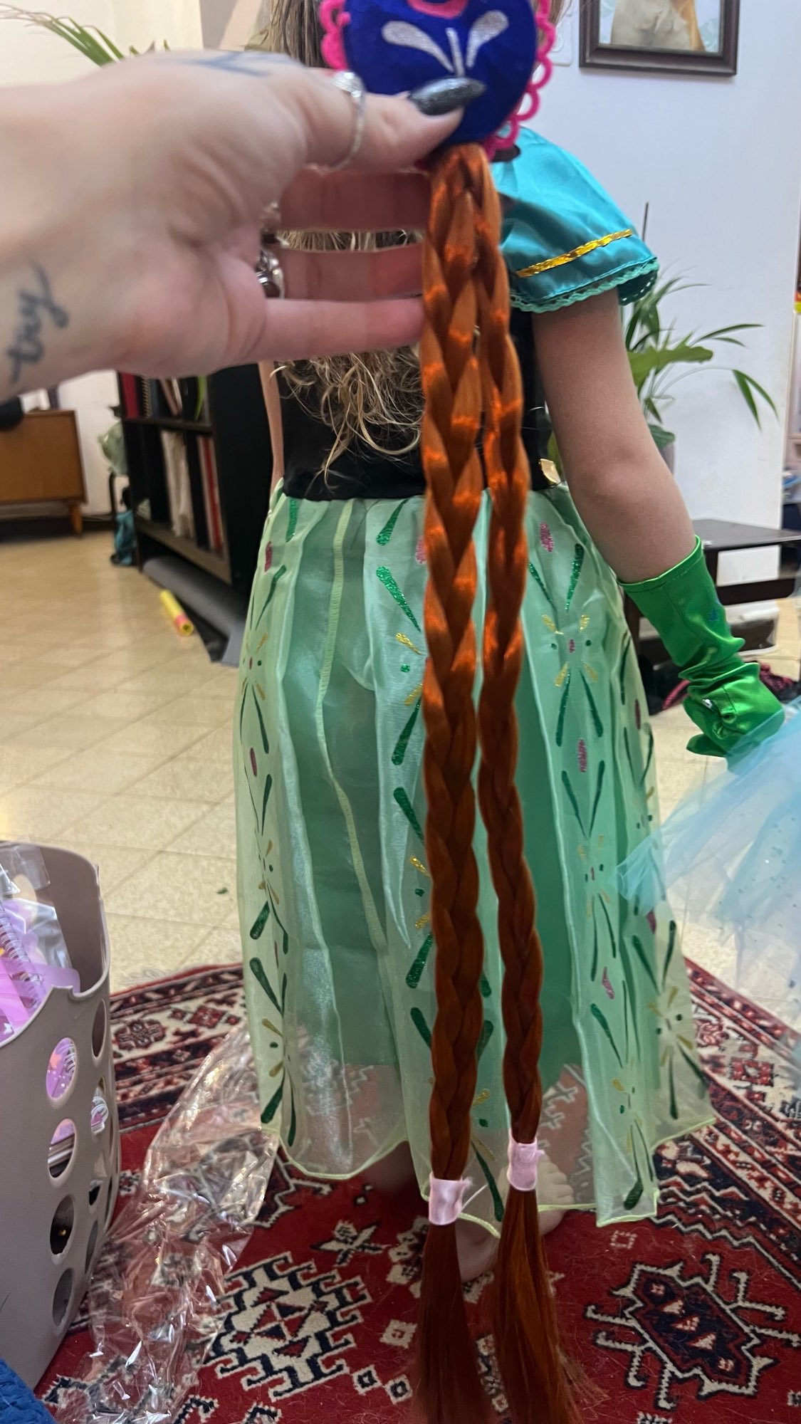 Arrived fast. I wish I ordered a size bigger even though my kid is 100cm it’s feel a bit small/short but she love it! The braids are good quality and the design is good