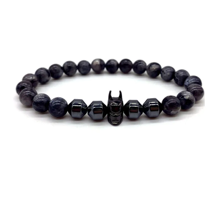 Bat Bracelet Charm OM Beads Jewelry Superhero Batman Black 8mm Hematite Tiger Eye Volcano Lava Stone Super Hero