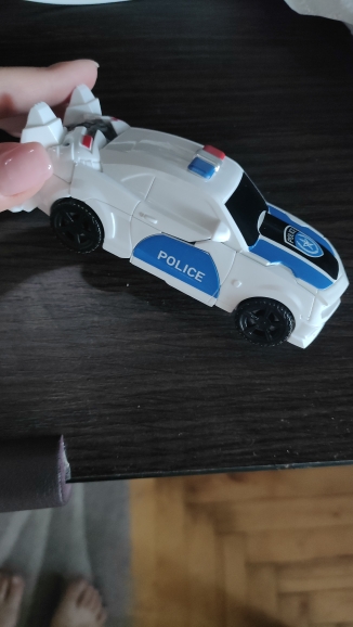 the child remained happy, the medium-sized toy ordered was a white police transformer robot