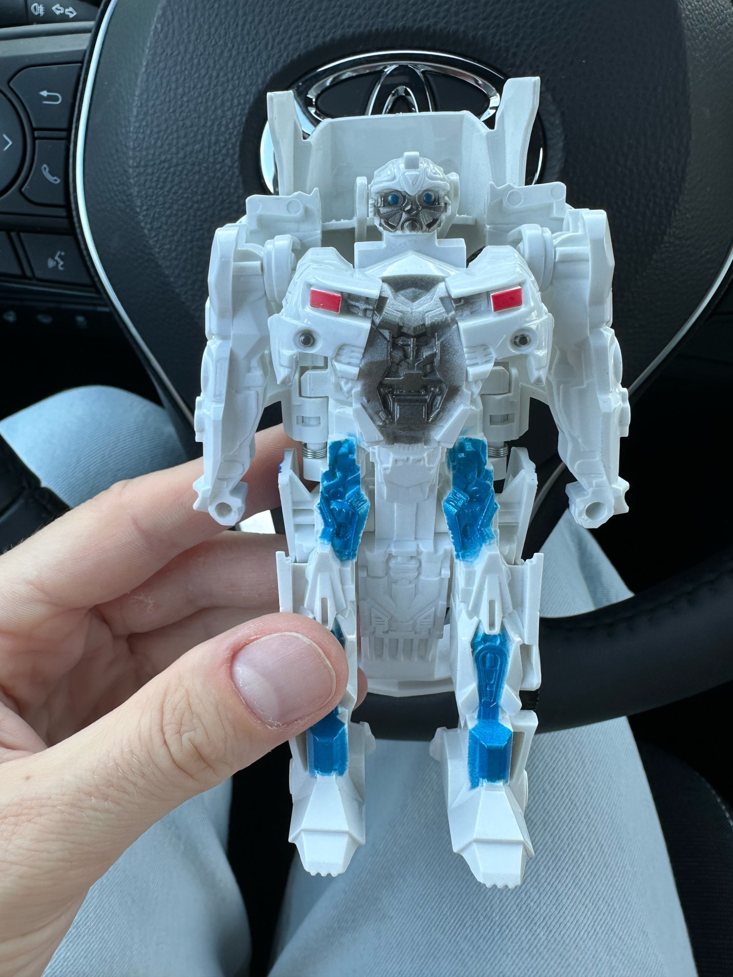 Gently extend limbs and rotate body sections until the robot is fully formed. Reverse the process to return to car mode.