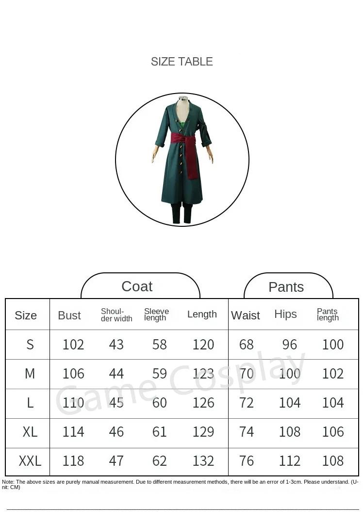 Due to the light and screen difference, the Anime Roronoa Zoro Costume color may be slightly different from the pictures. Please understand.
