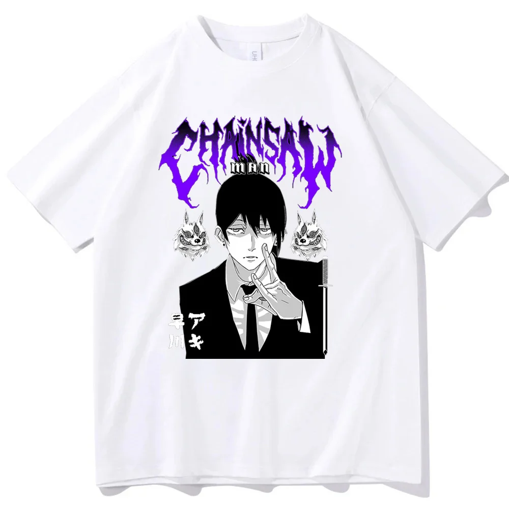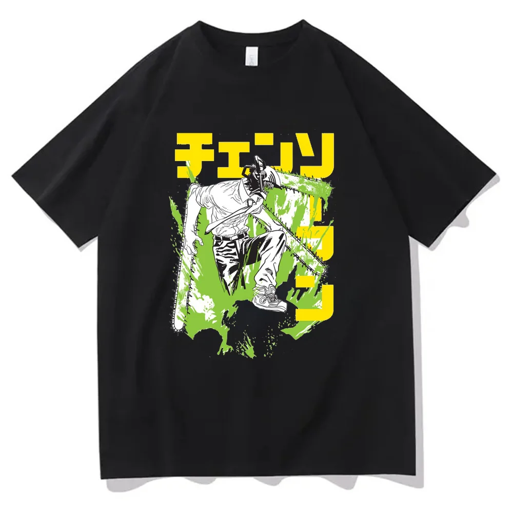 Amazing Funny Short Sleeves Tops Japanese Anime Retro T-shirt Cotton Summer T shirts Chainsaw Manga Y2k Unisex Cartoon Tshirts Tees