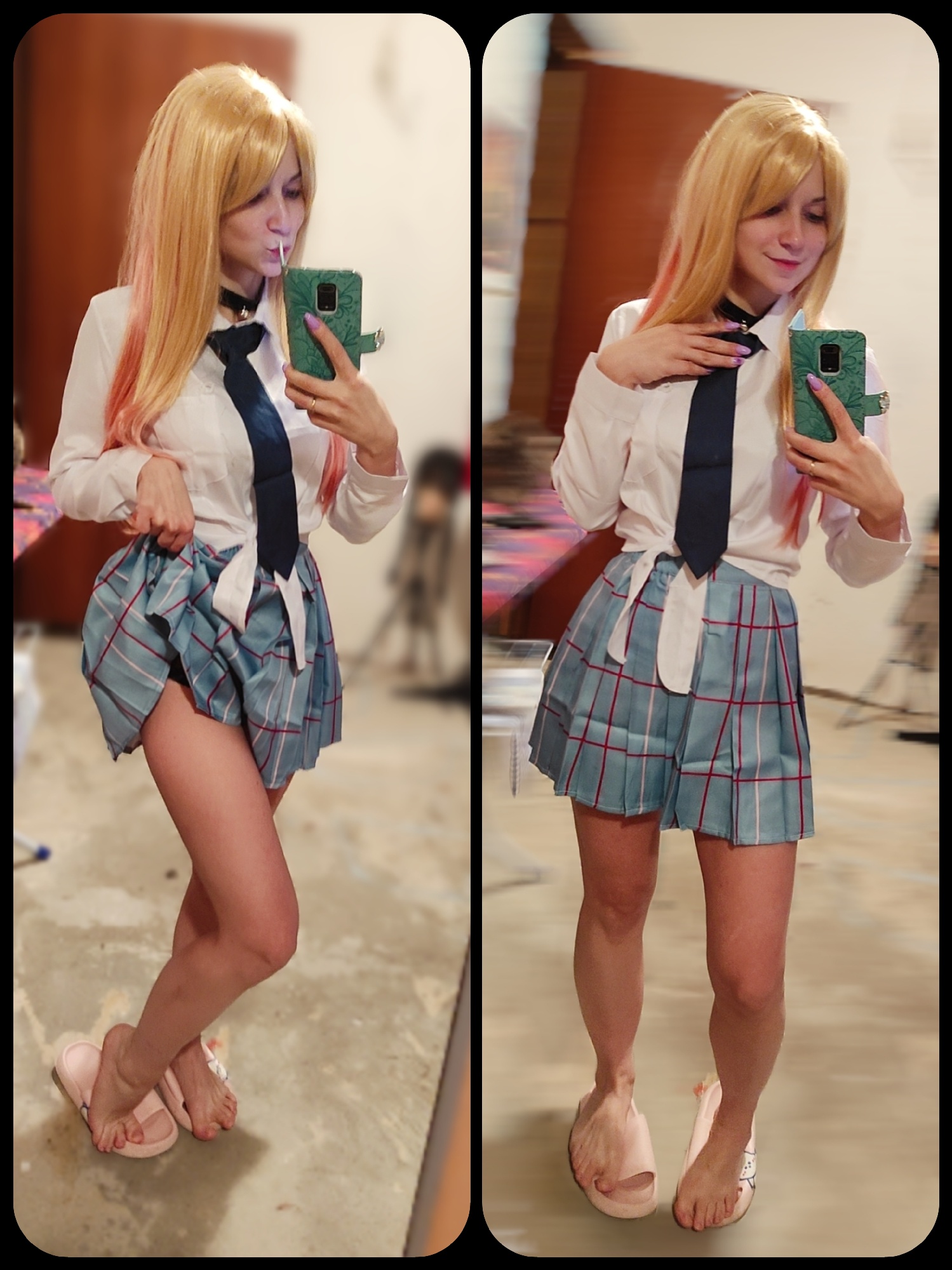 Wow just incredible! Very pleased, the quality of the skirt is certainly full game but it does not matter everything is fine!! The wig is very happy, I took the size m so that the skirt is very short, but it did not help much in general, take it
