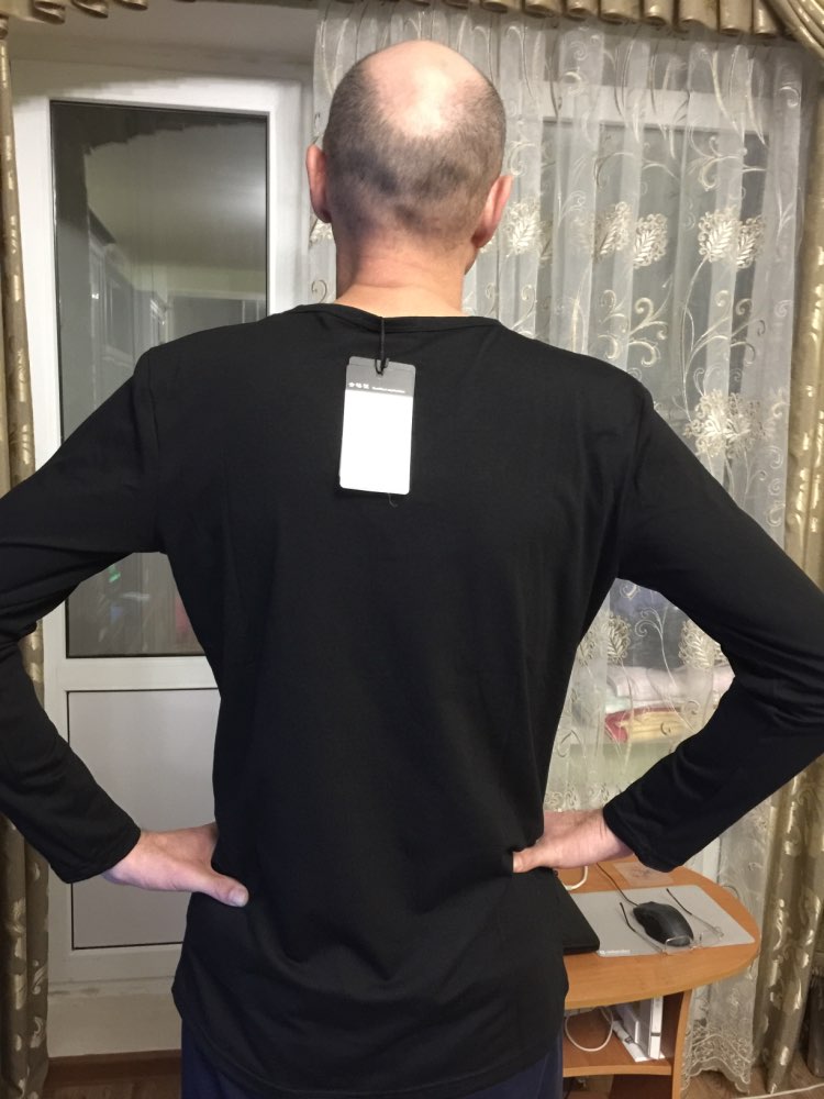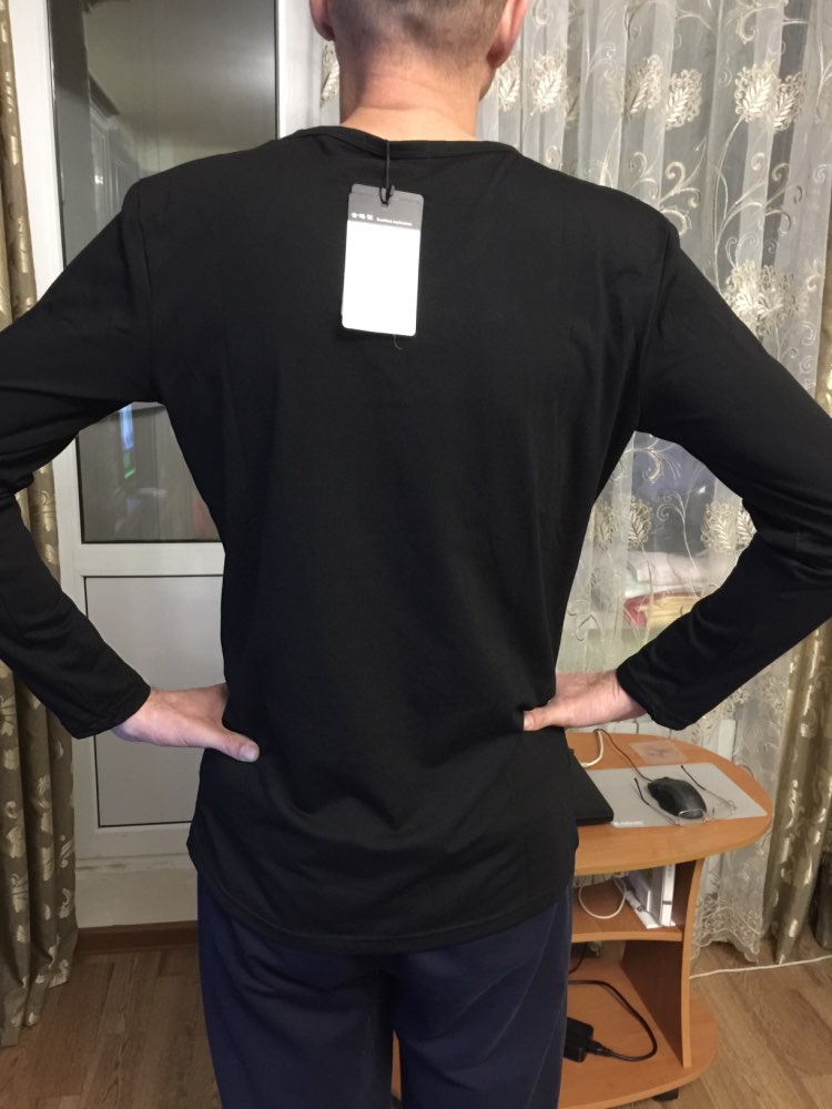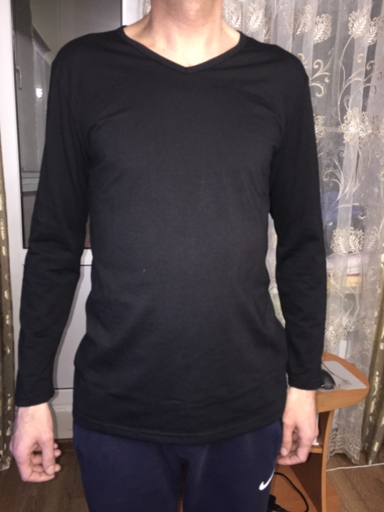 Отличный лонгслив, ткань очень мягкая и приятная, гладить легко. На ОГ 103, ОТ 102 размер 4 ХЛ сел отлично, не в обтяг, но муж как раз так и любит. Пришла посылка за 2 недели до Воронежа. Покупкой очень довольны!