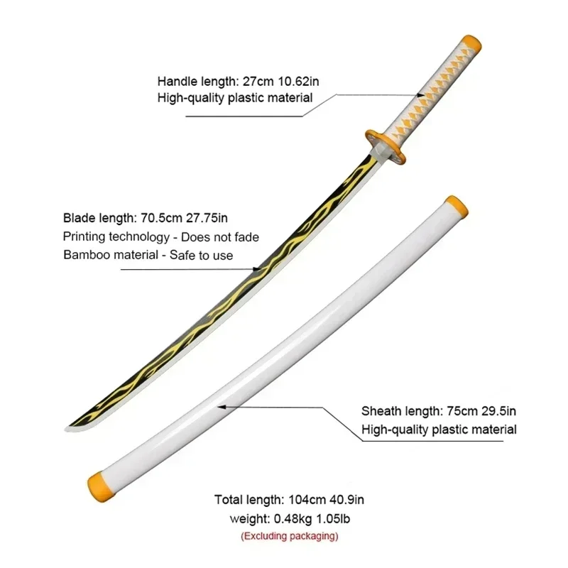 Zenitsu Sword Japanese Katana Ninja Knife 104CM Anime Demon Slayer Gifts Kimetsu No Yaiba Cosplay Props Toys Near You Online